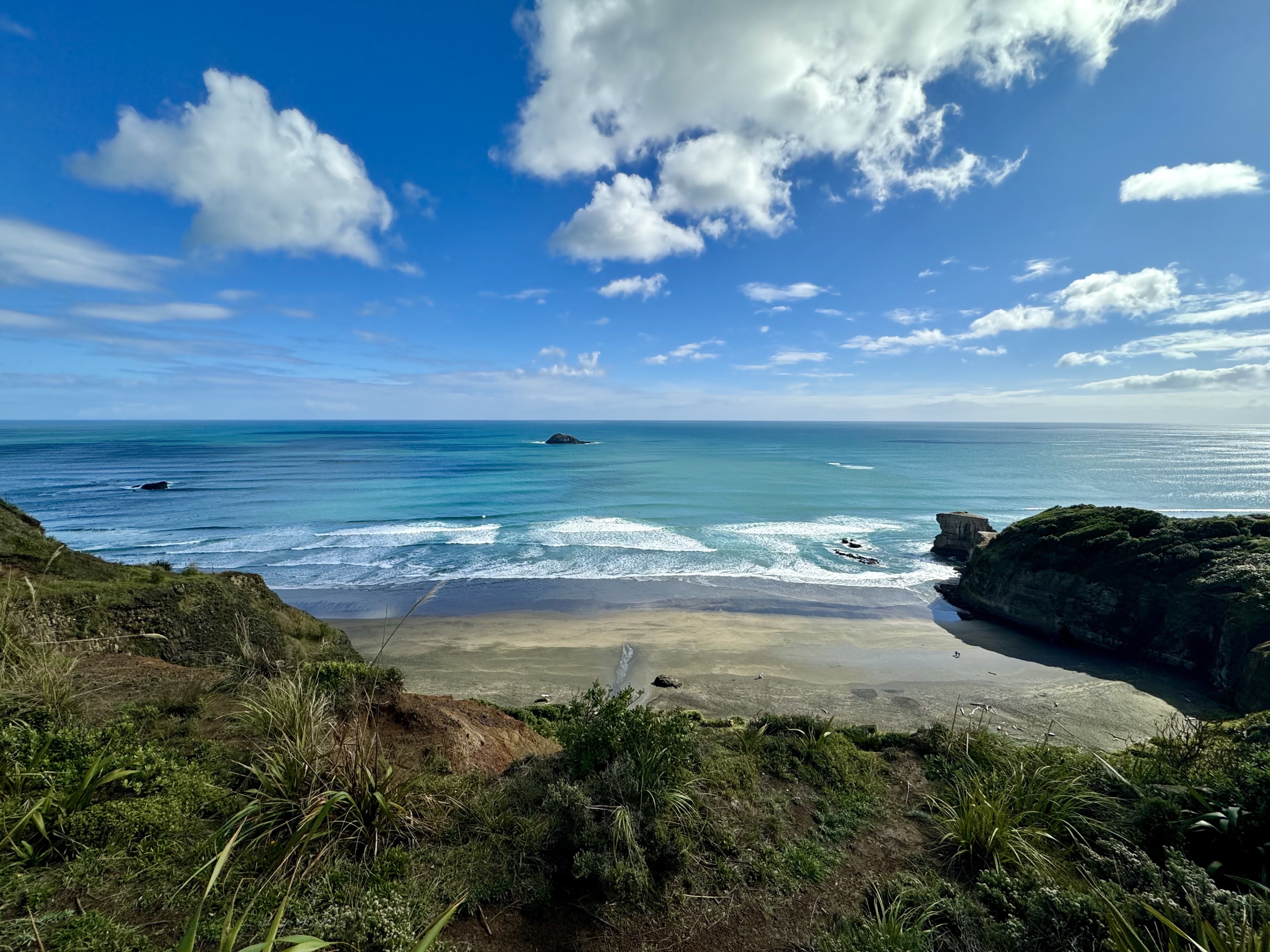 • Take in sweeping ocean views and rugged coastline at Muriwai Beach